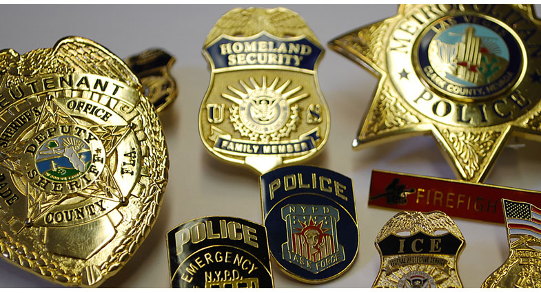 Our custom badges our made with high quality brass material cloisonne. A die is created from the your artwork or design. The die is used to create a mold. Next, the image is stamped onto a brass metal sheet and lettering is engraved into the brass. If desired we can add glass enamel coloring with a cloisonne technique. The badge is placed in a kiln and the glass enamel melts into the lettering. The enamel is grinded against a stone to expose inscriptions. Next, the surface is highly polished to a mirror finish. The badges are then plated with your choice of finish. We can add 3 dimensional elements or cutouts if desired.