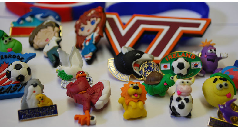 PVC is essentially just a thermoplastic material that can be used to create a wide variety of plastic products inexpensively. It can be used to make hard or soft lapel pins. We take your design and create a mold to produce the 3 dimensional pin from. The PVC can even be combined with a die struck piece of medal to produce a truly unique lapel pin.